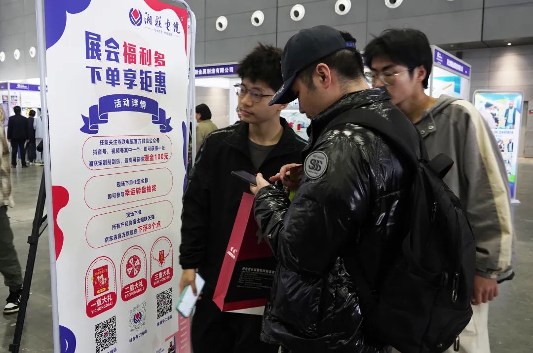 本次展覽,湘聯電纜展臺不僅在服務上下功夫,更是在價格與活動上集中發力,為本次展會專項申請了價格優惠和商務筆記本、養生壺、電工鉗等多重好禮,推出下單抽獎等消費福利,為客戶帶去切實的下單購線利益。